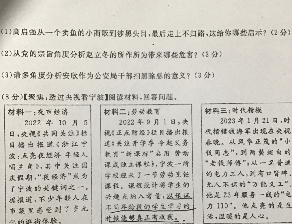 学生们也是紧跟时事的人,尤其是选政治科目的同学,那新闻联播都得看两遍,有助于培养答题思维。原以为老师出题的脑洞也就止步于此了,不成想历史试卷也能和“高启强”沾上边。