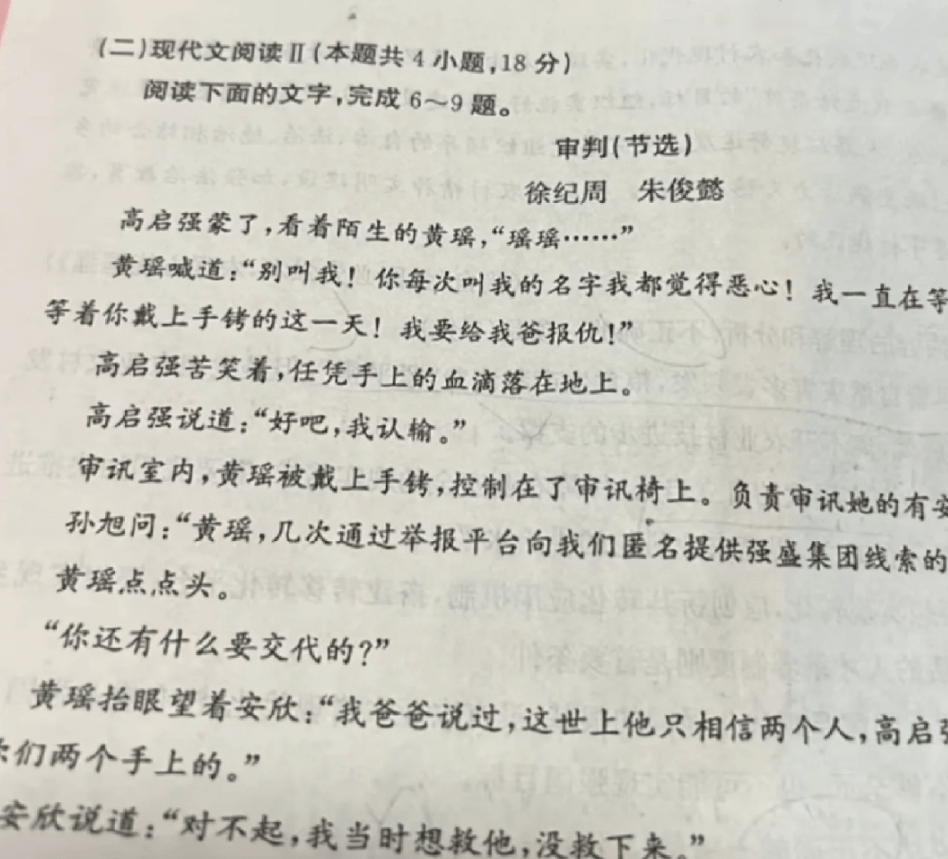 高中属于卷子满天飞的状态,尤其是到了高三,学生下课趴在课桌上小憩一会,醒来的时候人已经被发下来的试卷淹没了。刷题刷的千篇一律,要是偶尔一道题目正好贴合实际生活,那学生还能眼前一亮,来了兴致。要说出题人是懂紧跟时事的,当学生坐在考场上,看着试卷中的“高启强”,内心开始激动,这不是送分题嘛!