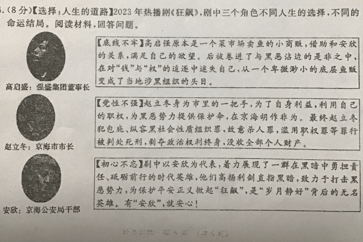 高中生虽然学习任务繁重,但也有自己休息的时光,《狂飙》大火,高中生也利用闲暇时间补了这部剧,大家看完也就回归到学业上,顶多课下和同学用剧中的梗调侃一下,没想到还能在试卷上又与它来了个重逢。